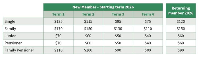 Please note: Fees are paid once per year, at the start of the year for returning members, and in the term that you start for new members. Current to 31st December 2026.