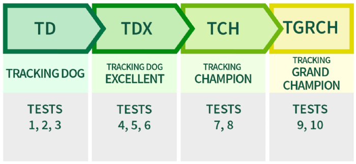 Tracking is another sport that harnesses a dog’s natural abilities to find and follow odours. In this sport, dogs detect the odour of a person (the ‘tracklayer’) and follow a ground scent trail through the natural environment and find articles (items that smell like the tracklayer, usually socks) left along the track.